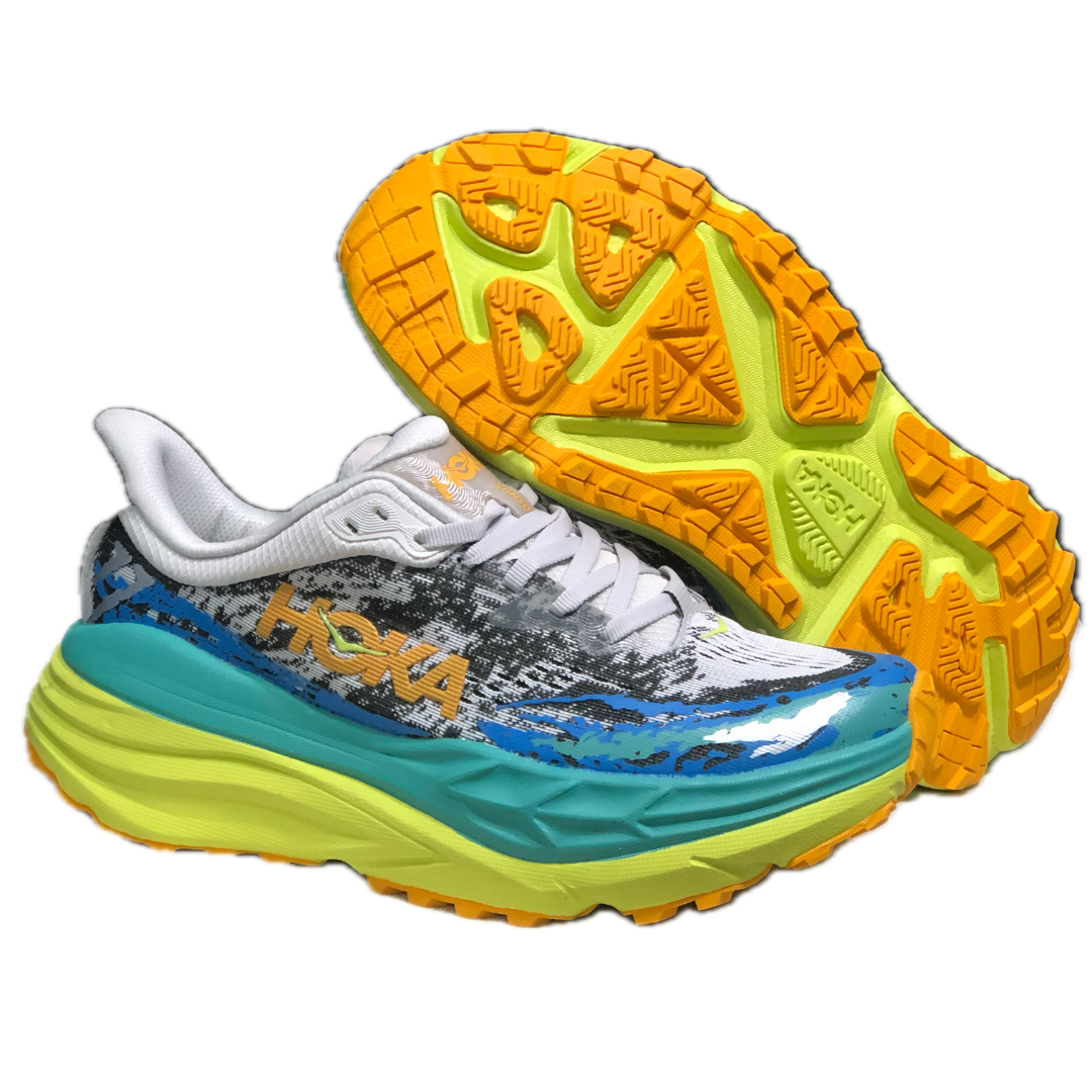 - Diseño robusto y duradero: Con un diseño robusto y materiales de alta calidad, las HOKA Stinson 7 están construidas para ofrecer durabilidad y resistencia en terrenos exigentes, perfectas para trail running y aventuras al aire libre.
