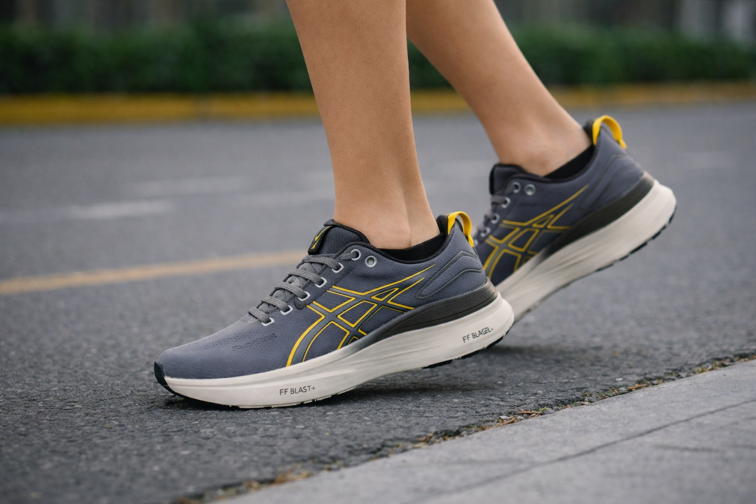 Espuma FF BLAST™ PLUS combinada con PureGEL para una pisada suave, reactiva y confortable en largas distancias.